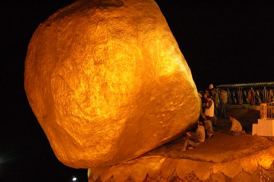 El Monte Kyaktiyo se conoce por su inmensa roca dorada que se mantiene milagrosamente en equilibrio al borde de la montaña. Es uno de los centros de peregrinaje más importantes del país. La devoción de fieles y monjes es tal que acuden a la roca cientos de personas día y noche. Las vistas desde arriba son impresionantes, rodeados de jungla y montañas. La subida se hace en camión abierto desde el pueblecito de Kimpun y se puede hacer noche arriba para acudir al templo en su momento más mágico, antes del amanecer.